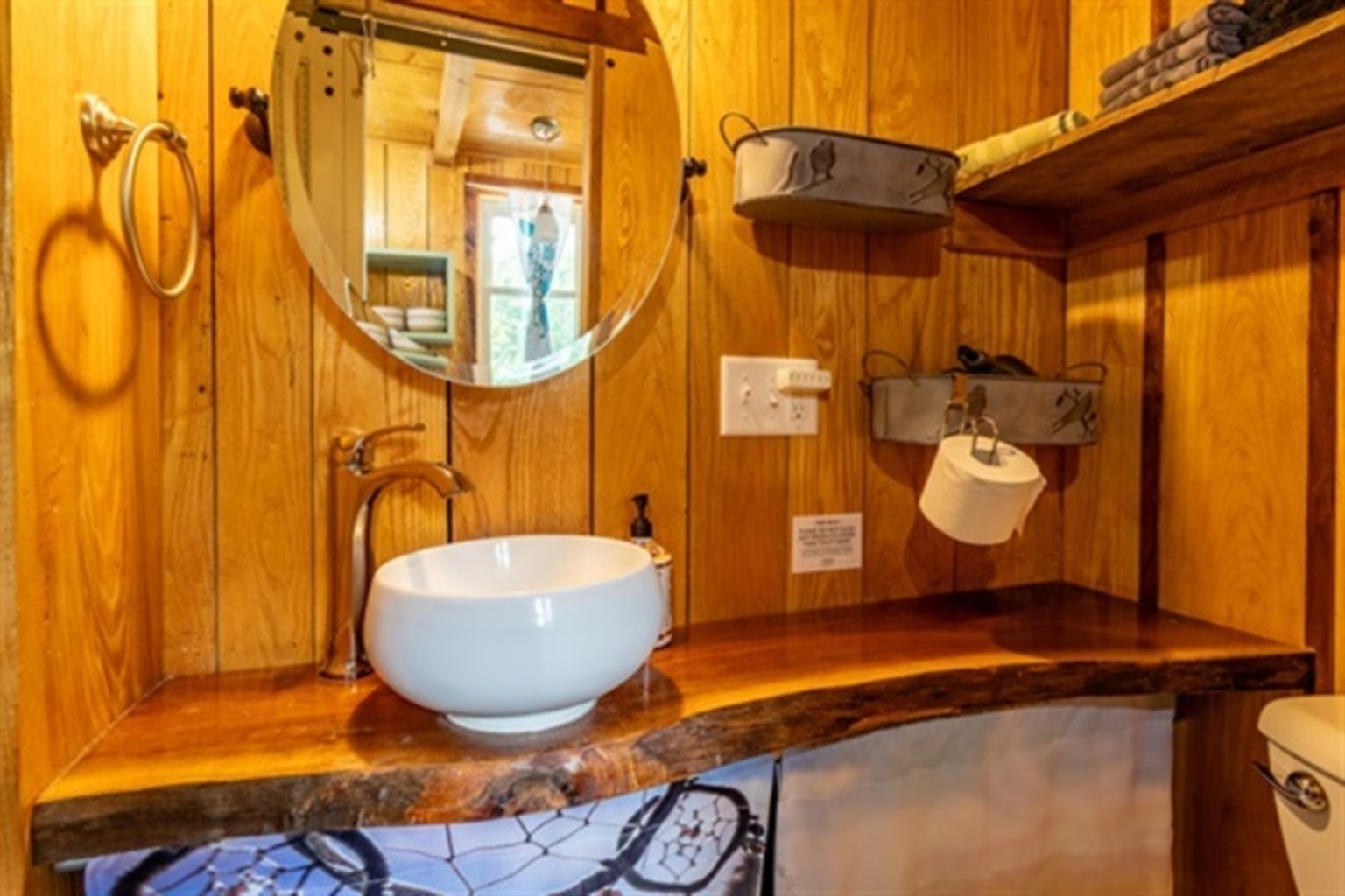 Nestled in a rural residential neighborhood, our tiny cabin offers a true retreat—the surrounding neighborhood is available to view on Google Maps. We, your friendly hosts, live on-site in the main house and are available to meet upon request. Your stay includes dedicated parking and outdoor space.